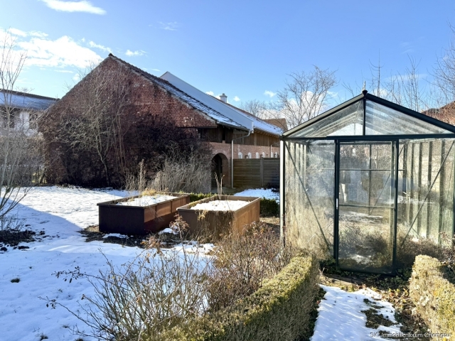 Dieses außergewöhnliche, denkmalgeschützte Landhaus im bäuerlichen Stil wurde um das Jahr 1850 errichtet und beeindruckt durch sein beidseitiges Bundwerk am Wirtschaftsteil, das die traditionelle Bauweise dieser Epoche eindrucksvoll widerspiegelt. Auf einem großzügigen Grundstück mit ca. 2.435 m² präsentiert sich das große Anwesen mit einer gesamten Wohnfläche von rund 450 m². Dieses besteht aus einem großzügigen Hauptwohnteil mit ca. 365 m² Wohnfläche sowie einer separaten Einliegerwohnung (eigener Hauseingang) mit ca. 85 m², die bei Bedarf ohne größeren baulichen Aufwand mit dem Haupthaus verbunden werden kann.