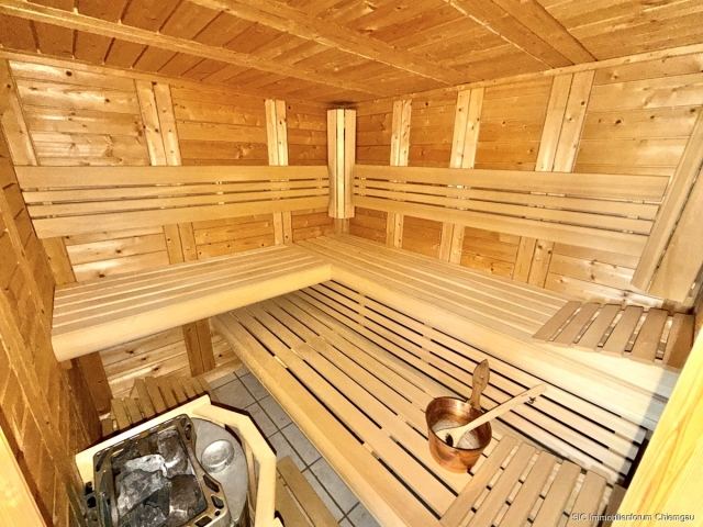 Der Hauptwohnteil verfügt über zwei Eingänge. Der repräsentative Haupteingang befindet sich auf der Südseite des Hauses mit direktem Zugang zum Garten. Ein weiterer Zugang liegt auf der Nordseite. Besonders beeindruckend ist das sehr große, lichtdurchflutete Kaminzimmer mit Fußbodenheizung, das sich über die gesamte Hausbreite erstreckt. Dank großzügiger, segmentbogenförmiger Glasflächen auf der Nord- und Südseite bietet der Wohnraum viel Tageslicht mit freiem Blick in den Garten. Des Weiteren befinden sich auf dieser Etage eine Waschküche mit Dusche und Sauna (hier könnte auch eine Küche installiert werden) sowie ein WC und weitere Räumlichkeiten. Ein Aufenthaltsraum ist derzeit durch eine Leichtbauwand von der Einliegerwohnung getrennt, sodass eine Zusammenlegung beider Bereiche bei Bedarf unkompliziert möglich ist.