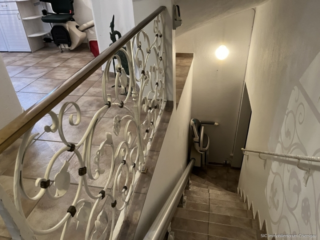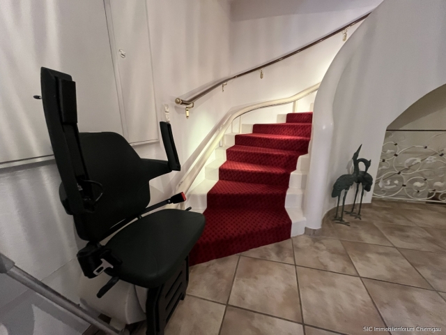 -Treppenhausanbau aus Ende der 80er-Jahre mit Treppenlift vom Keller bis ins 1. OG