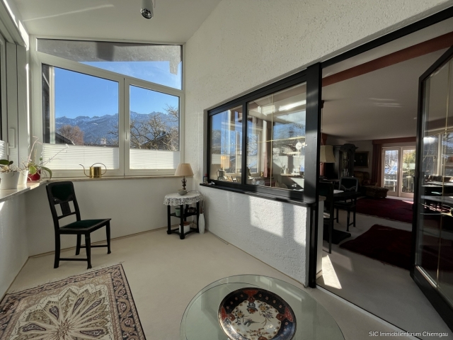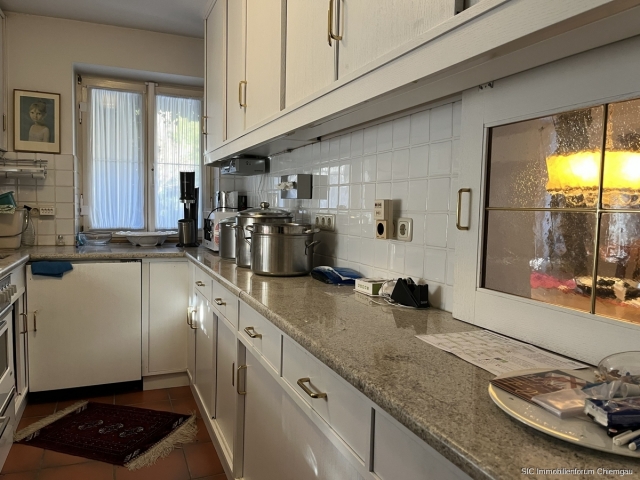 Der Ausblick zur Südost-Seite Richtung Kreisklinik, Villengebiet und Predigtstuhl ist wunderschön, die Nordwest-Seite mit Panoramablick Richtung Staufen, Zwiesel und Saalachau genauso einzigartig. Hier müssen Sie allerdings die Umgehungsstraße der Stadt (B21) tolerieren, die nah am Grundstück vorbeiführt. Dank der im gesamten Haus verbauten Schallschutzfenster genießen Sie dennoch eine angenehme Ruhe im Innenbereich. Platz am eigenen Grund für einen Garagenbau der abschirmt oder einen privaten Lärmschutz ist jedoch gegeben. Womöglich kommt ja doch noch eine offizielle Entlastung der B 21 mit Tunnel oder behördlichem Lärmschutz. Der Kaufpreis, die enorme Gebäudegröße, die flexiblen Nutzungsmöglichkeiten und der Zustand der Immobilie entschädigen aber durchaus. Es ist eine außergewöhnliche Immobilie zu einem fairen Preis!